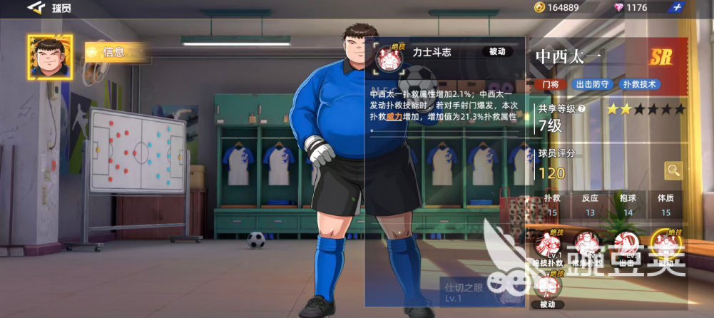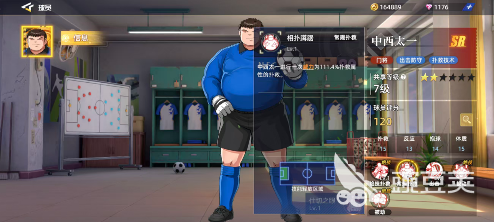 被动力士斗志也是他的绝技,此时给中西太一带来的也是在扑救属性上面的增强效果,毕竟他就靠这方面的能力存活在球场上,但是这个百分比带来的提升不多只有2.1%,但是如果此时中西太一利用这样的加成来发动扑救技能的时候,对手正好是射门爆发期间,那么中西太一在本次的扑救当中会得到威力增加的效果,这里增加值为21.3%的扑救属性,所以在对手正好进入这个射门爆发的时候大家一定要抓住时机把这个技能用出来。