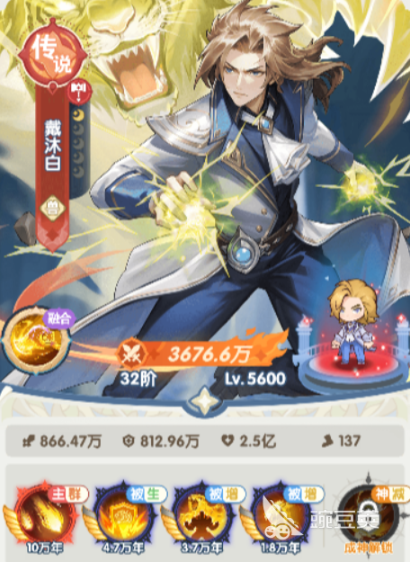 第三个给大家推荐的就是戴沐白,戴沐白的话,一般就放在前排使用,因为本身能力上面更像一个坦克,他的承伤能力就是作为主要使用的一个途径,额外的还有一些小控制也可以分散出来使用,他在吸引敌人火力之后可以附加足够的控制,给到对面这类负面效果,其实搭配一些持续输出的还是非常好用的,特别是在戴沐白如果生命血量被敌人攻击到只剩30%的时候,他就会进入一个新的状态,暴怒状态当中他可以获得的加成效果有双重,第一点就是可以得到足够的减伤,如果此时敌人在攻击他,他就不用担心自己被击败,另外就是在他攻击力上面会有足够的提升数值,此时他还有40%的概率可以生成一个护盾,这个护盾不仅可以保护他自己,还可以保护其他的队友,所以在前排的生存能力上面,他确实是有非常强劲的表现。
