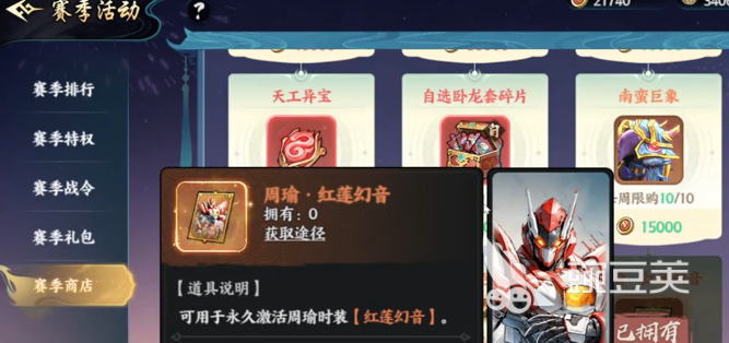 让人比较惊喜的是,还可以看到有周瑜的皮肤,以前要想获取就要花68元。现在只需要10万赛季币就可以直接兑换,关键是这赛季币根本就不需要氪金。大家来到世界页面去做巡视任务,还有参与日常活动之后,就可以直接白嫖。在赛季刚开始第2天就可以积攒2万多赛季币,按照这个速度,不需要花太多的时间就可以把皮肤抱回家。零氪玩家照样也可以拥有帅气的外观,还有战斗力加成。接着来看一下礼包,还有特权的选择,不同预算的玩家都可以找到适配的文案。