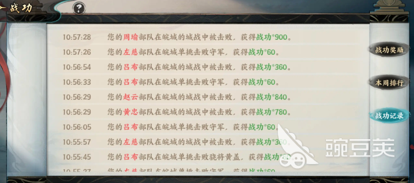 在获取战功秘籍之前,需要先了解战功的核心。最基础的是部队在被消灭之后就可以获得360战功。在击杀npc部队之后也可以获得战功,如果击杀敌方玩家的部队也是360战功。在这里还有一个建筑战功,在s1之后每天20次即可,每一次大概是花费5000个铜币,这纯属就是浪费。很多的玩家都会以为杀的部队越多,那么更有机会获得武功秘籍,其实并不是如此。在粮草充足的时候,直接让部队自动攻击比自己等级高的城池,例如100级打180级,虽然死得很快,但是一轮下来就可以拿到1800战功。这也是获取武功秘籍的关键。别人打一轮,可是你就能够刷三轮到四轮,很适合每周最后冲榜使用,需要提前的囤好。