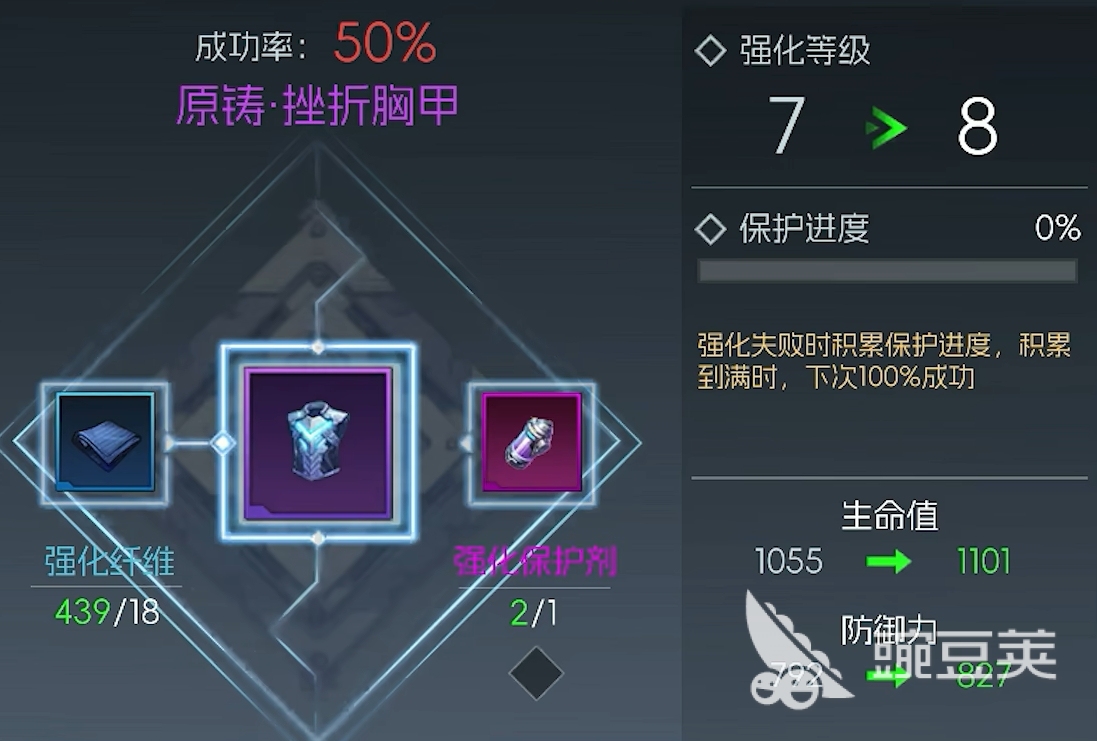 同时,装备还可通过强化进一步提升它们的属性,所需消耗的资源强化纤维可在副本等玩法中获取,装备的强化等级越高,再次强化时需要的强化纤维数量也就越多,并且在高强化等级时有概率会出现强化失败掉级的情况,但可使用强化保护剂来阻止掉级,还能为装备积累强化保护进度,满值时再次进行强化百分百能成功。