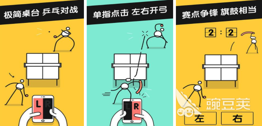 在乒乓之王这个游戏里,会用极其简单的画面展现出一个乒乓球场,在这里,玩家需要操控这些线条角色进行乒乓球对抗,每次挑战,都需要根据乒乓球的路线调整人物的位置,除了和其他成员进行双人对战之外,玩家还可以一个人操控两名成员,这样能让玩家独自进行左右手的比拼,是非常锻炼反应能力的一个游戏。