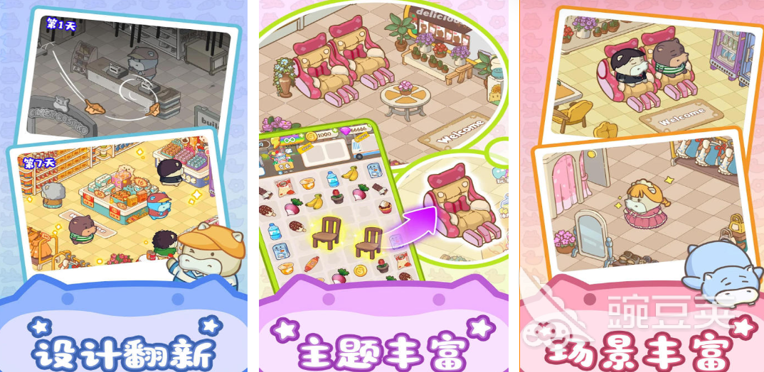 这是一款画风Q萌的模拟经营类游戏,玩家们要帮助小河马去经营它的超市。超市最开始物资匮乏,就需要玩家们通过合成的方式获取货物,完成顾客的订单,从而得到金币,再用此去解锁更多的货物。这个金币也可以用来扩建超市、购买各式装饰物品、升级基础设施,小孩子能够在这款游戏里锻炼自己的策略能力,选择合适的商品进行售卖,并根据实际情况去选择装修和推荐产品。