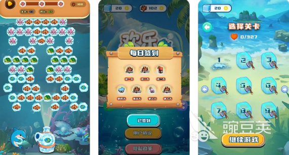 想像一下,当你置身蓝色的海洋世界,自由的感觉就来了。除了自由美丽,还有各种各样可爱的海洋生物围绕在你身边,比如五颜六色的小鱼,可爱的八爪鱼,憨态可掬的海龟。这款游戏带你回到童年,一点难度都没有。甚至它的玩法和泡泡龙非常相似,只要瞄准发射点就可以将这些海洋生物一网打尽,消除干净闯关成功。