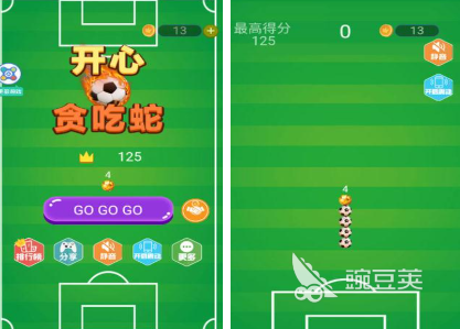 绿色绿茵足球场上,只见由足球做成的贪吃蛇在其中快速前进,只要看见足球就吃掉,瞬间变大。如果撞上障碍物,前面的努力就前功尽弃。真的是简单纯粹的游戏规则,但是就这种简单的重复,没有尽头的努力,却吸引了不少人去挑战。看着绿茵场,应该吸引了不少喜爱足球的朋友去挑战这款游戏吧。