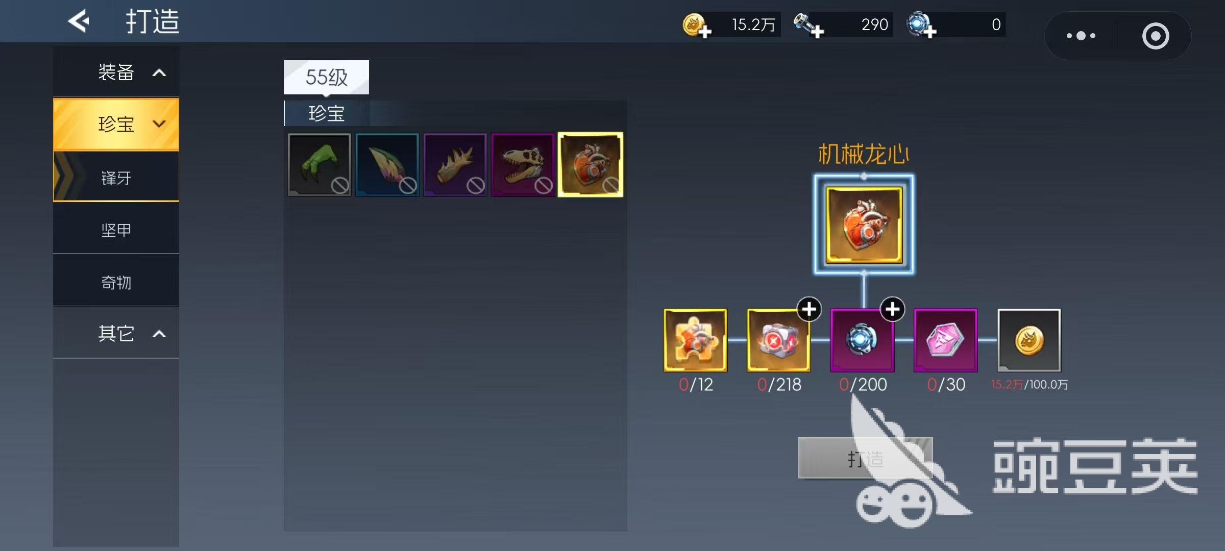 解锁打造功能后,玩家可点击游戏界面右下角的“变强”入口,进入相关页面。请注意,打造与改造为两个独立模块,操作时需注意区分。打造主要分为三大类别:装备、珍宝以及其他材料类。首先来看装备打造,包括武器、防具和饰品的制作。普通打造仅需常规资源即可完成,而远古级别的打造则需要稀有素材支撑。例如,龙之巢穴掉落的天空之源、始源龙骸,以及遗迹宝库产出的精粹钢,都是打造高阶装备不可或缺的核心材料。