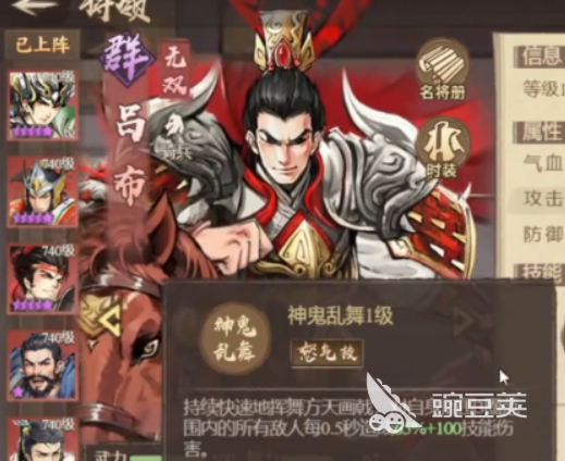 阵容最大的输出点,还是吕布,他可是最强的输出角色。怒气技能是普通的群体伤害,但真正强的地方是他的被动技能。在敌人陷入麻痹状态的时候,他就会自动触发精准打击,输出很高的伤害。但是因为麻痹的效果触发比较频繁,所以他就能够一直持续不断地打出高伤害,是整个阵容的火力来源。