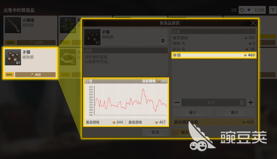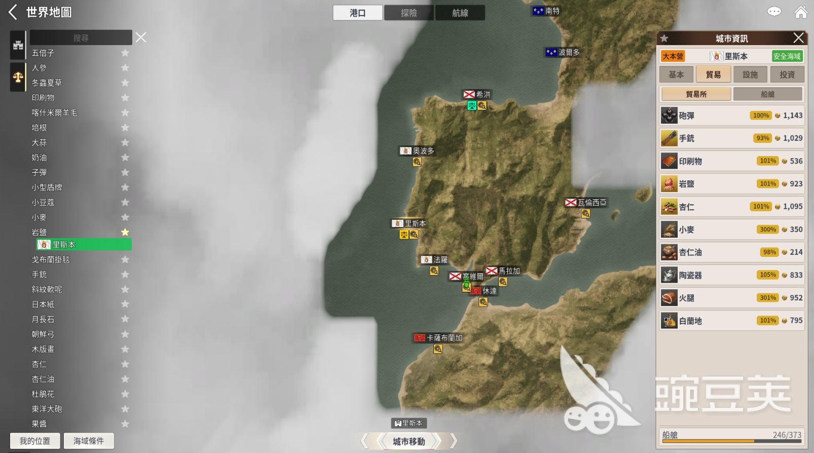 交易任务5的主要目的就是买卖某种货物,有时还要跨地区运输。任务虽然简单,但是真正开始操作后就会发现商品是否有利润、港口库存是否充足、途中是否会遇到灾害等都会导致结果的偏差。玩家在获得任务后首先要查清目标商品的产地,然后同周围港口的交易价格进行对比。目标港口离得太远的话,应该配用提高航速或者减少疲劳的配件来节约时间。