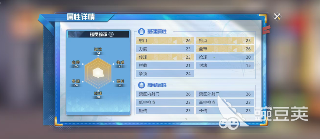 太空翼在基础的多项评分中也比其他的球员要高出跟多,射门的强度就达到了26的得分,而在盘带上面同样也是有26的得分,整体属性当中除了封堵最低只有15分的数值,而抢球正好只有20分之外,其他的各项属性都超出了20分的基础分值,这样的效果比很多的SSR球员数值都要高很多,所以说太空翼就是这款游戏中主打的一张卡,也是其中的主角卡。