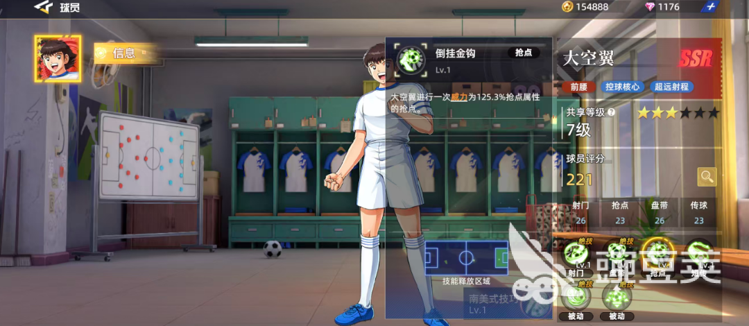 大空翼作为其中强度一骑绝尘的SSR品质角色,游戏单证的球员评分也是最高的,直接达到了221的总体评分,目前大家是很难在游戏当中看到超过200的总体评分数值的,而在这里大家可以看到他在其中可以作为前腰位置上啊的球员使用,带来的控球效果一般都是作为团队核心使用的,且也可以给球队带来超远的射程,这样在球场当中可以涉及到的技能区域就比较多了。