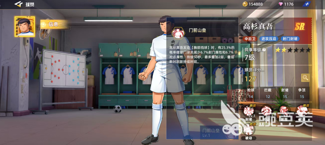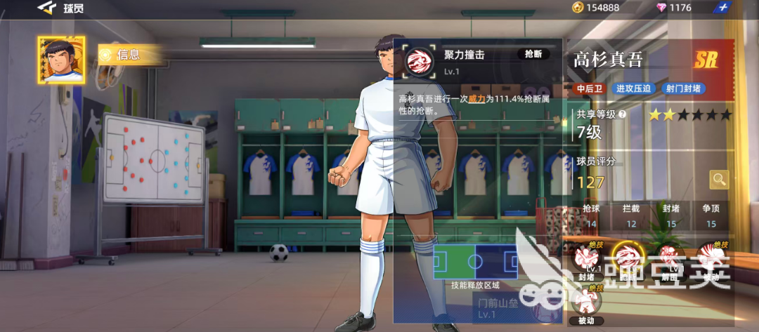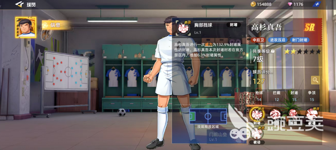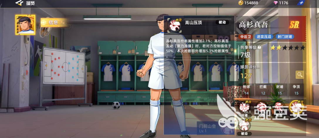 高杉真吾作为前期用的比较多的一个SR球员,放在中后卫才比较好用,如果用高杉真吾来作为进攻的主要核心,其实他带来的压迫力也是很大的,利用自身的射门动作加上封堵优势,可以带来的位置效果也能够配得上这样的品质设定,目前他在整体的球员评分当中获得了127的评分,球员现在的六维图当中他有一个很明显的短板,在抢球效果当中只有14的评分,其余抢球14、拦截12,封堵15、争顶15都是比较均衡的,也都是后期在中后卫的位置上面可用的能力。