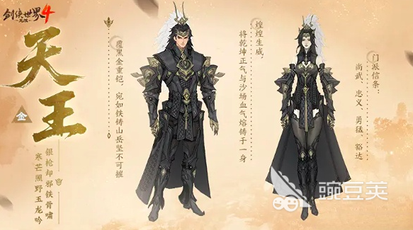 在文章最后小编想分享一下,天王这个门派其实是源自于洞庭义军,这一门的派的整体设计思路还是比较独树一帜的,由于出身于军队之中,所以该门派的大多数武器装备还是以枪盾造型为主,无论男女角色都身着黑金甲胄,腰系龙扣非常酷炫。