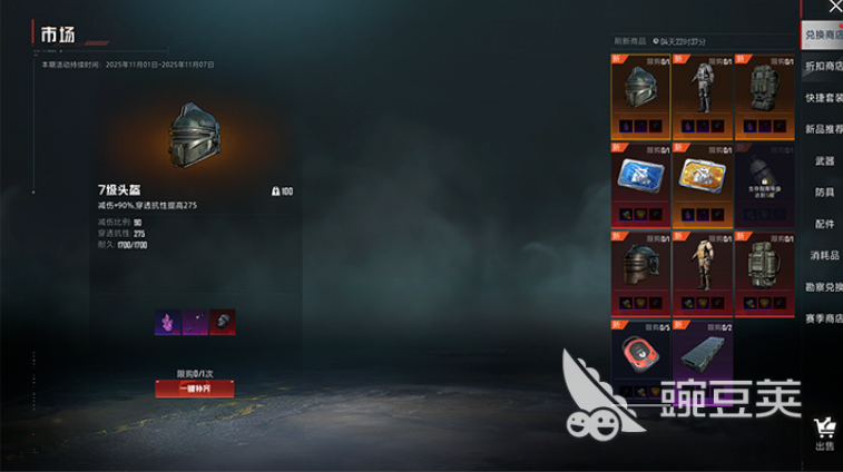 伴随交易行同步上线的还有限时兑换商店,以赛季活动形式开放。该商店内的商品会定期刷新,并设有购买次数限制。其中包括能源电池、7级防具等稀有高级物资,玩家还可使用指定变卖物兑换特定道具,提升资源利用效率。