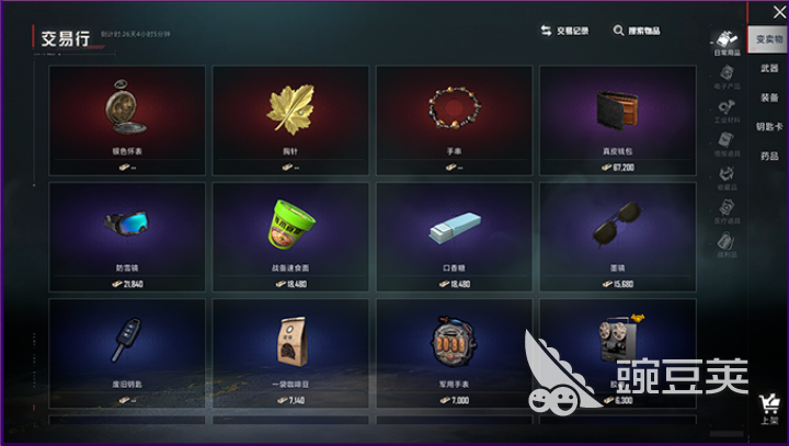 进入地铁大厅后,可在右下角找到交易行入口。进入界面后,可查看当前正在出售的各种物资,涵盖五大类别:变卖物、武器、装备、钥匙卡以及药品。玩家既可通过分类筛选查找目标物品,也可直接在搜索栏输入关键词快速定位。需要注意的是,通过交易行购买的变卖物将被绑定,无法再次上架交易。