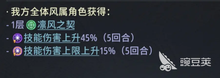 为了高效堆叠“凛风之契”,弗洛拉成为不可或缺的辅助角色。她的一技能可为全体风属性友军附加一层“凛风之契”,而这一增益不仅能作用于兰朵莉亚,还可惠及其他风系单位,同时带来45%的伤害提升和5%的伤害上限增长。此外,她的被动技能允许所有拥有“凛风之契”的风属性角色进一步增强奥义技与风属性技能的伤害。她的奥义则能对单个敌人施加“讨伐之种”,使其攻击力与防御力显著下降。可以说,弗洛拉集增伤、减防、状态提供于一体,功能性极强。