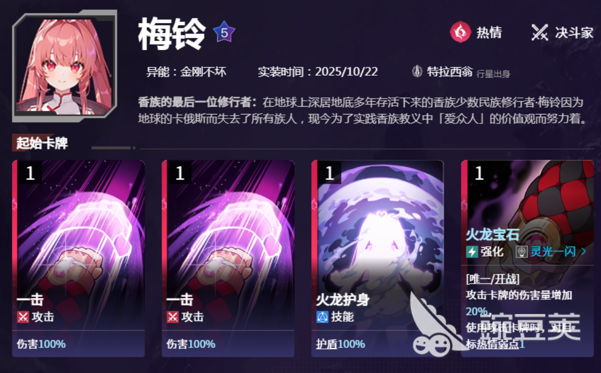 升龙技能的触发条件需要配合一定的卡牌和装备。攻防一体的卡牌可以实现0费攻击,梅玲就可以用最少的资源发动一次强力的进攻。而“回收吊坠”等装备可以给梅玲增加额外的决心加成,从而提高她的输出。梅玲可以通过合理搭配这些元素,在战斗中很快达到最大伤害输出。
