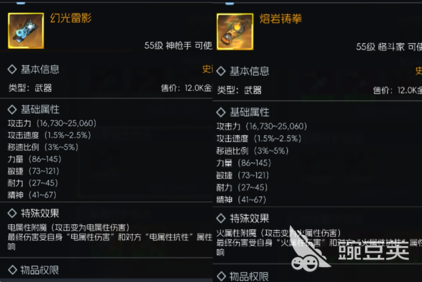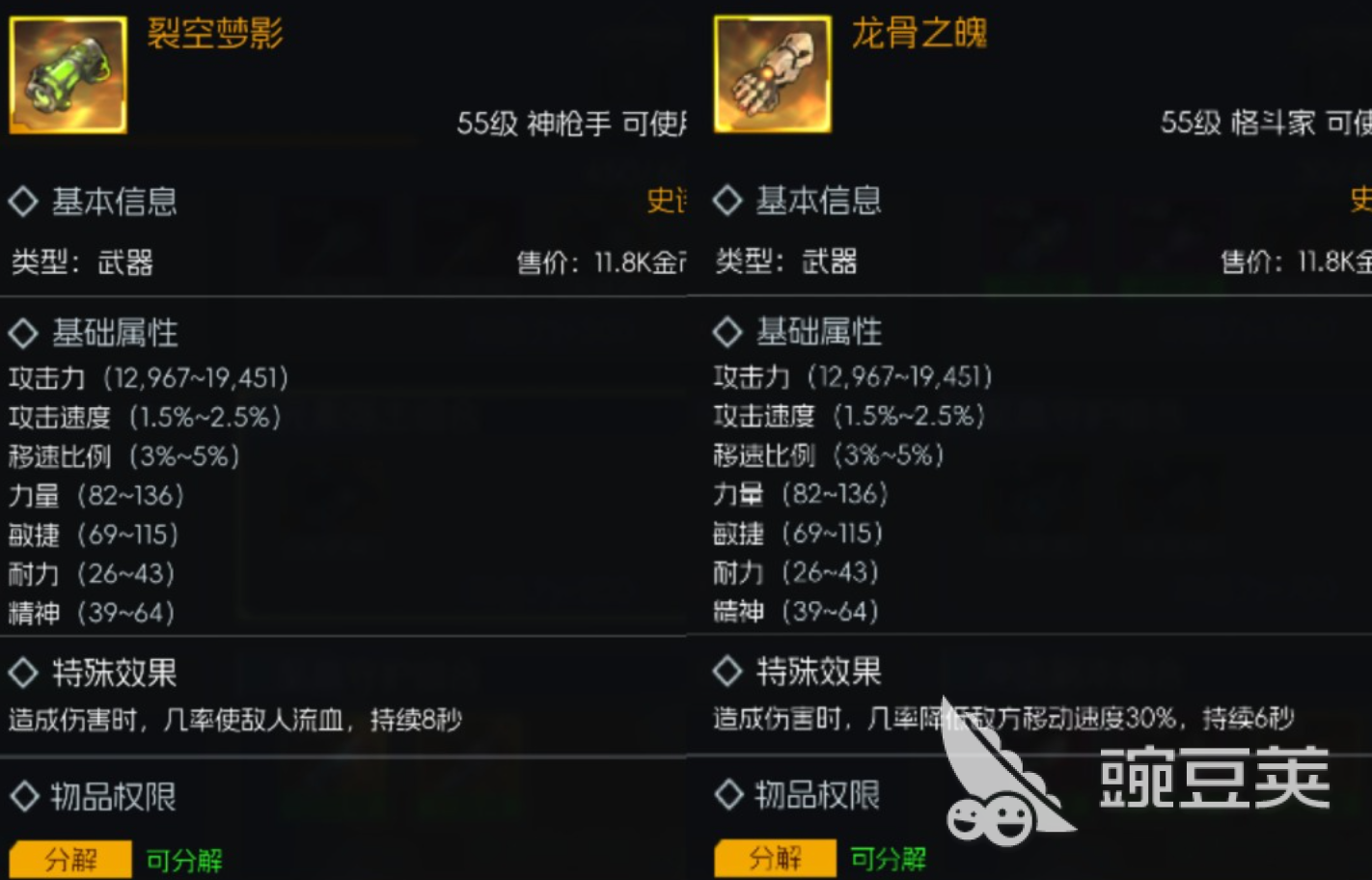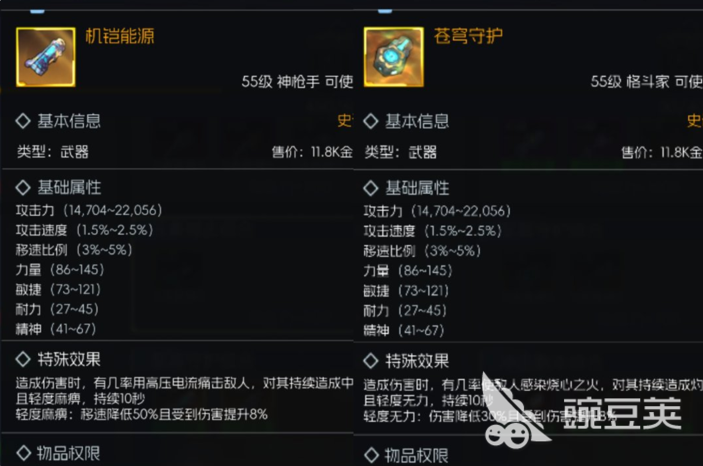 基础武器是玩家进入55级阶段的过渡装备,代表性的有汉娜-裂空梦影、黄帽-龙骨之魄。此类武器的基础属性比较均衡,可以通过普通打造或者深渊副本掉落获得,性价比较高。特殊效果分别是流血和减速,虽然伤害力小,但是在初期副本以及PVP中却能发挥作用。入门装备可以积累材料、获得经验,为之后获取更高级的装备做准备。