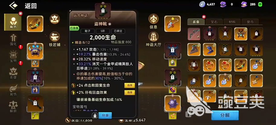 其中大部分装备都是给人物提升攻击速度的,比如说盗神靴,在其中除了攻击加成有1000多的数值之外,还可以给到他的移动速度上面增加28%左右的一个数值,其实弓箭流的话是较需要这样的移速加成的,毕竟在场内弓箭流能够带来的蓄力机制百分比还确实是比连射要高很多,那么这里大家有移速的话,就可以快速走到一个敌人比较少的地方来训练输出,为他搭配冥光战甲的话,主要就是因为其中需要的生命数值也是可以增加2000多点的,虽然这个护甲目前带来的防御数值不算特别高,但是前期的话也是可以装备使用的元素项链的话,在这里基础带来的800攻击也是非常好用,而且作为一个同为传奇品质的装备能够带来的加成绝对是不少的。