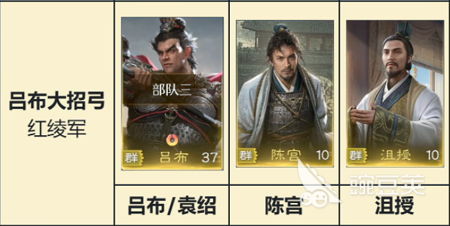 九牧之野的这个阵营当中其实大部分都是通过国家来进行划分的,除了大家熟悉的魏蜀吴之外,那大家们进入到这个群雄阵营的时候,就会发现其中群雄的核心武将其实比较少,那么在大家理解当中,其实可以用来做搭配的就是吕布、张角和华佗这三个角色,可以算是武力比较强势的核心武将了,但是这个阵容是很多玩家已经用过的,其他的武将其实也是组出了不同的流派效果之后用法不一样,那大家们先说第一队,就是吕布主动骑的阵容,这个阵容里面就是吕布、貂蝉、吕玲绮的搭配,因为大家之前了解过吕布的话,就会知道他确实在单独武将效果上面看的非常突出,然后吕玲绮或者马腾都可以放在阵容当中用,整个体系就是以吕布打主动技能为主。