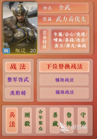 那么根据阵营效果来判他们走骑兵队是非常合适的,而且后期张辽带来的属性加成,根据目前他的状态初期效果来说的话,其实也是可以根据物理数值来进行加成,后期搭配战法的话是不太一样的,这里要注意根据武将他们不同的能力来进行战法搭配的时候,夏侯惇他更适合带的是诱敌深入以及破风而击这两个战法,而张辽的整军伤武还有虎豹骑战法会更适合,夏侯渊在搭配战法上面更适合带的就是猛烈强击以及千里奔袭,这些战法在目前的效果当中是更适合搭配以上三位武将的。