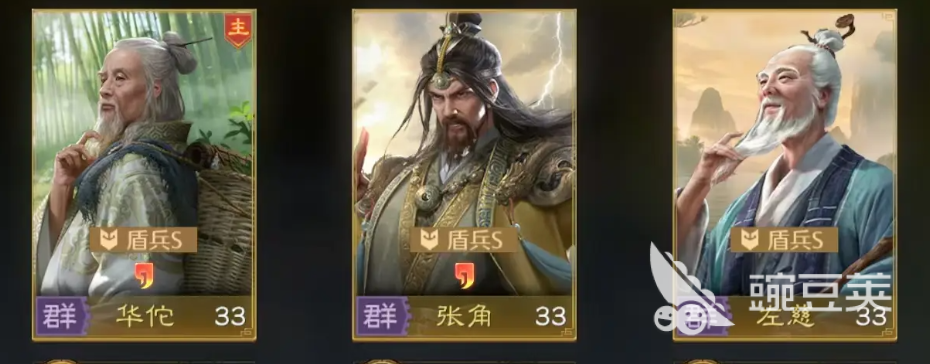第三队基本所有的三国游戏都有这队,也就是三仙队,也是十分的强力,这种组成有左慈加华佗加张角,这也是一个一保2组合,华佗当担任一个队内的主要辅助,左慈和张角担任输出,张角携带的是太平道法跟克己,华佗携带千阵、仁治武功,左慈携带无中生有和借东风,值得一提的是左慈的自带技能天雷诀伤害十分变态,所以可以使用无中生有或者紫色的加主动发动概率的技能,那替换思路,张角一定要携带增加自己智力战法增益buff或者输出技能,左慈增加主动发动概率主要是靠他的天雷输出。
