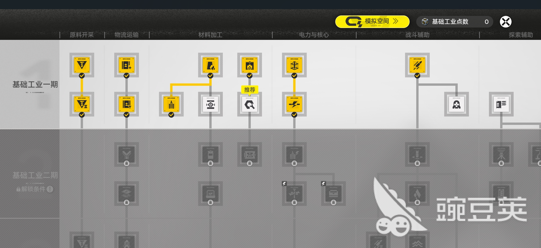 科技树为基建效能跃升的核心路径,共分六大类。建议新手优先投入资源点亮前四类(能源、制造、物流、自动化),以显著提升资源产出效率与产线稳定性;战斗辅助与探索辅助两类科技可待中后期再行补全,避免前期资源分散。