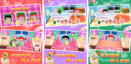 其中包括的小婴儿角色特别多,大家可根据自己的喜好选择女宝宝或者是男宝宝,还可选择不同月龄的宝宝类型,在真实的浴室或者是卧室当中,正确照顾这些小婴儿,培养孩子们的动手能力以及思维能力。比如每天都需要为小宝宝进行洗澡,动动手指触摸屏幕就可以也涂抹各种沐浴露或者是香皂等等,让宝宝洗香香。