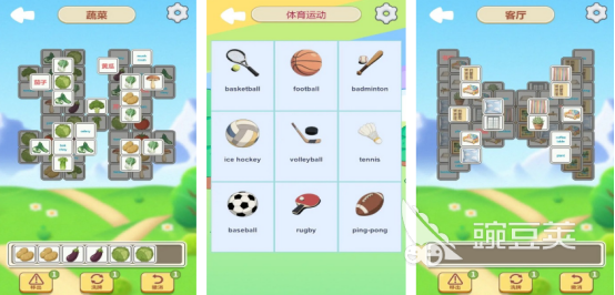 将经典三消玩法与英语词汇训练深度融合,设置蔬菜、体育运动等多元主题关卡。每关呈现具象物品(如足球)与对应英文单词并列展示,部分关卡采用叠层设计,上层为实物图、下层为英文词形,玩家需识别语义一致的组合完成消除。内置移位、洗牌等辅助功能,兼顾策略性与语言辨识训练。