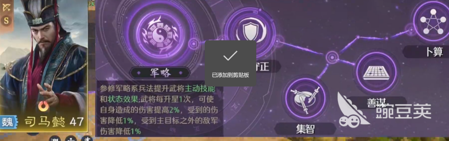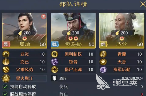 该阵容采用三武将标准配置:主将司马懿、副将周瑜、辅助华佗。司马懿定位为策略核心,需置于主将位,技能推荐【借尸还魂】+【蚀骨】,二者协同可高频触发【中毒】状态。中毒伤害虽为持续型,但总伤可观,且能有效压缩敌方血线,提升整体战斗流畅度。若暂未获取【蚀骨】,可用【鼓角齐鸣】替代,确保策略输出不断档。