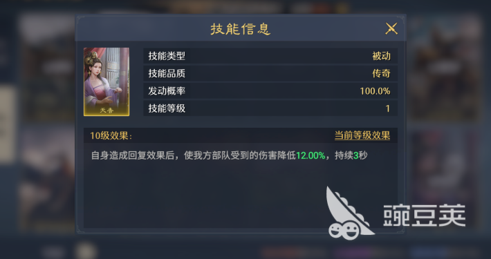 这样的技能效果每1秒当中都是可以激活一次的,所以配合了高频率的一个普攻之后,刘备能够承受的场景也有很多,大家目前根据这个技能效果来进行一个续航支持的话,也是非常不错的选择,当然了,他在技能后期可以装配的战法当中,其实选择也是比较多的,很多时候他都会搭配天香这个战法,这个战法目前在跟他的技能自身联动性上面效果是非常不错的,搭配了天香之后,刘备自身治疗的时候可以带来的数值是可以使我方全体的友军降低12%的一个伤害,所以敌方攻击再强的话,利用天香也可以达到我方足够的抗伤能力,并且一次性可以是持续3秒时间之内的。