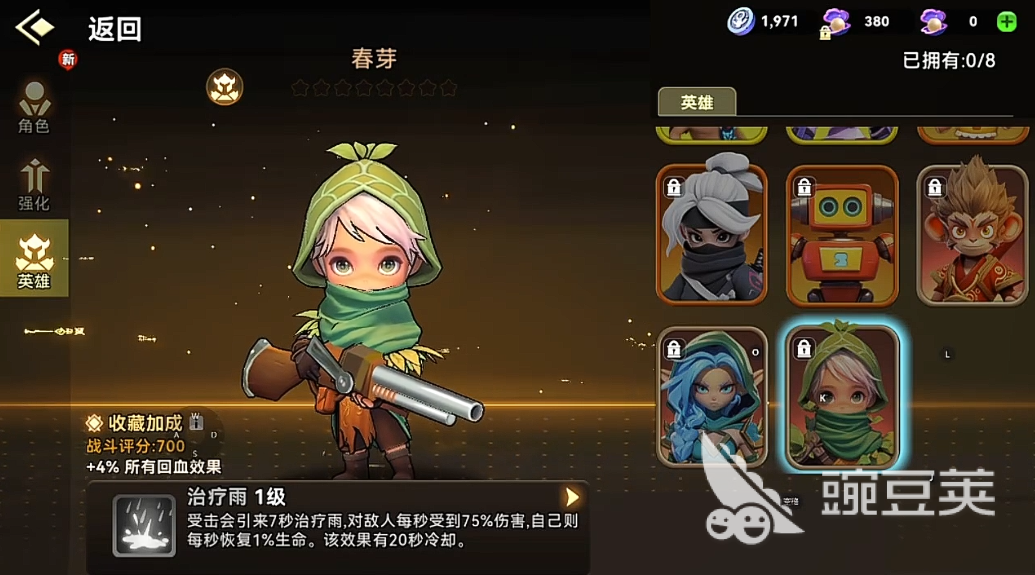 装备强化采用格子绑定机制:所有强化等级依附于角色装备槽位,而非具体装备道具本身。这意味着更换武器或防具时,无需重复投入资源进行强化,大幅降低养成成本。英雄选择方面,初始角色无任何技能,需通过商店购买或活动获取。例如连续签到7日可获得英雄“春芽”,虽为免费角色,但综合强度优于系统默认赠送角色,是新手过渡期的理想选择。