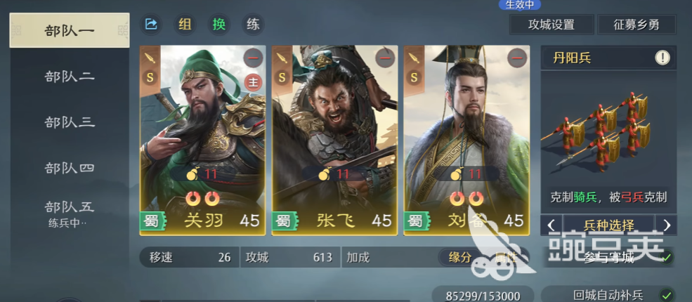 在兵种克制、机制克制,环境克制以及作战条件四个条件都满足克制的情况下,其实大家就算没有氪金打满红也是轻而易举的,当然兵种克制以及机制克制这两个其实还挺好把握,难的就是作战条件以及环境克制,而且上面这几个也是比较有代表性的搭配,第4套蜀国指挥盾,因为目前情况下很多的玩家几乎都是以盾枪为主来搭配的阵容,这样的话大家的骑兵可能就没有那么好用,所以用蜀国指挥盾也是可以的。