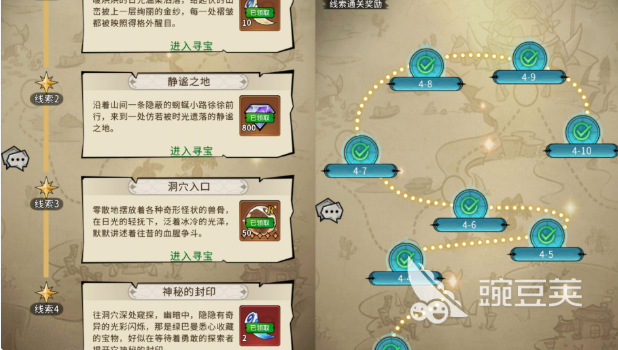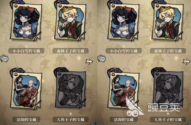 藏宝图采用主题化关卡结构,每张地图含4个独立大关,如“人鱼王子的宝藏”“森林王子的宝藏”“法海的宝藏”等。每个大关下设10个递进式小关,整体难度平缓,无卡点设计。通关任意小关即可即时领取金币与结晶——前者用于角色等级提升与技能强化,后者为角色碎片合成核心材料,积少成多可显著缩短主力角色成型周期。