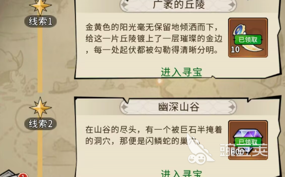 每关配有沉浸式场景描述,例如“暖烘烘的日光温柔洒落,散落地摆放的奇形怪状兽骨”,增强探索代入感,兼顾剧情体验与休闲减压需求。该副本不消耗体力,每日上线后优先清空当日所有已开放关卡即可——小关奖励实时到账,大关通关后奖励需手动领取,建议及时操作以防遗漏。随着主线进度推进,更多主题藏宝图将陆续解锁,奖励类型持续扩充,长期坚持可累计海量基础与稀有资源,大幅降低后续角色培养对钻石的依赖。