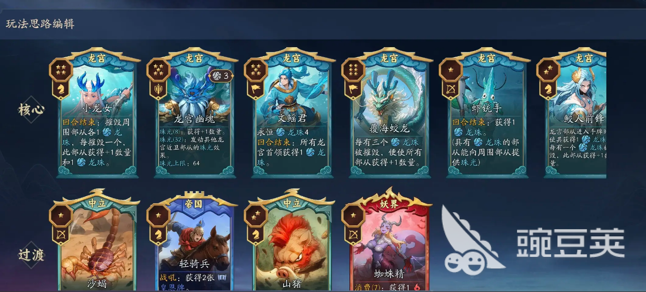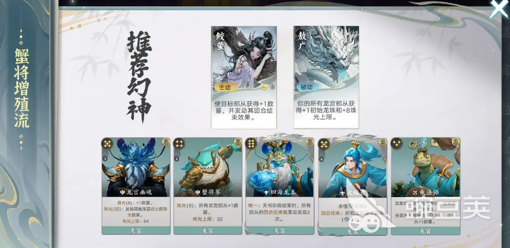 敖广为龙宫势力核心,核心优势在于提升龙珠上限并强化珠光效果,显著加快主力单位成型速度。实战中可搭配四海龙王组合,触发双回合结束机制,大幅提升攻击频次与单位数量压制力,适合追求稳定推进与持续压制的玩家。