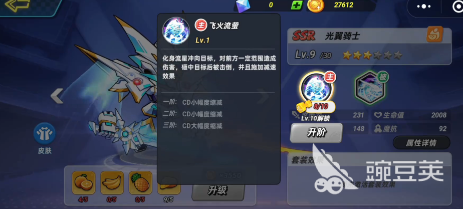 光翼骑士的主动技能“飞火流萤”具备强先手能力:向指定方向高速突进,对路径上所有敌人造成击倒与减速效果;落地后生成持续减速区域。该技能随等级提升冷却时间逐步缩减,支持高频连控,在团战开启阶段可有效打乱敌方阵型站位,为队伍创造集火窗口。