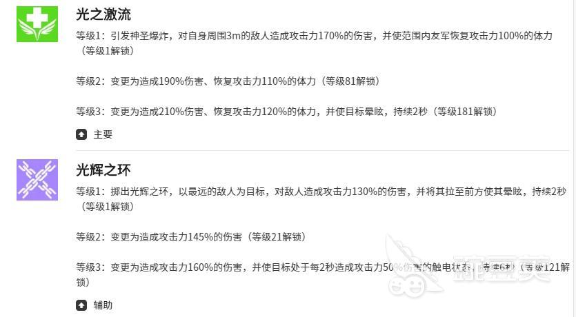 面对大量的破坏者,阿德里安从常年中苏醒,为的是可以维护世界的和平和正义,在挑战的时候,可以利用不同的技能输出攻击,首先就是名叫光之精灵的技能,这个角色主要进行使用之后能对自身三五范围内的敌人,带来7%的伤害,如果在这个范围内有自己队伍里的成员,那还能增加这些成员的体力,这个技能随着等级的提升,伤害能力也会变得更高,就算还有一个名字叫光辉之环的辅助技能,一旦使用技能之后,会在游戏里投出光辉之环,一般都会选择最远的敌人做目标,这时候能给目标提升带来130%的伤害,攻击完之后会把敌人设定成眩晕状态,还会直接拉到前排,队伍里的其他角色,就可以在这个时候开启猛烈的攻击。