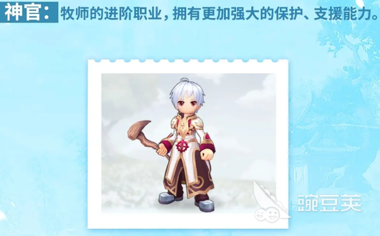 服事拥有的支援能力也可以为队友带来足够的恢复,而且净化类型的效果也可以让我方不受对面负面状态的一些影响,增加了队友属性的话,也是为我方增加足够的战力,那么服事后期可以走的转职有两个方面,第一个是牧师,牧师的路线当中大家进行转职的话,会拥有更强大的一些支援能力,包括其中的治疗可以为队友提供的持续生命数值会更高一些,然后在净化效果上面增加的数值也会更高,所以整体提升的就是生存方面的能力,而第二个转职的话,大家就可以走神官,此时进行转职的话就是可以看作是牧师的进阶职业拥有的能力,就是更多的在体现资源以及保护的效果上面,所以通过这样的转职,大家可以加深服事他基础的一些能力。