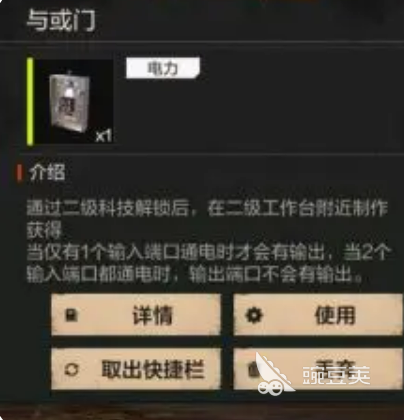 然后是与或门,这个元件比较特殊。它的名字听起来有点拗口,但是理解了以后会发现挺实用的。与或门也是有两个输入端,不过它的逻辑跟与门不太一样。当只有一个输入端通电的时候,输出端是正常供电的,但要是两个输入端同时通电了,输出端反而会断开。这个特性在某些特殊场合很有用,特别是需要制造一些反常规效果的时候。