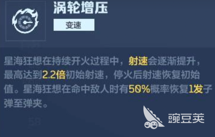 除了深海冲击之外,还会有一个名叫涡轮增压的技能,有了这项技能之后,角色的开火速度就会提升,每一次挑战开启之后,采用的不是单一的射速,只要能持续开火,射速就能向上增长,最高可以达到2.2倍的射速,一旦停火之后,攻击速度会恢复初始状态,非常适合利用这把枪去对抗大量的僵尸,另外在涡轮增压这个技能下,只要命中对手玩家就有50%的概率可以恢复一发子弹,这样就更能在游戏里进行无限的射击。