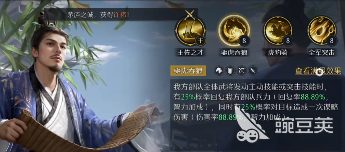 说到这套阵容为什么出伤这么快,关键就在于荀彧带来的驱虎吞狼技能。这个技能的效果是当我方全体武将发动主动技能或突击技能时,有一定概率恢复部队兵力,同时对目标造成额外的一次谋略伤害。配合张辽提供的双重辅助效果,队友触发连击的频率会变得非常高。这样一来,驱虎吞狼被触发的次数就会大幅增加,整套阵容的输出能力也就跟着水涨船高了。