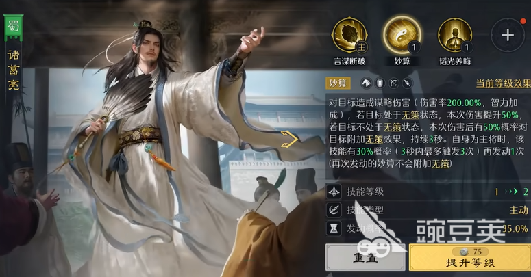 横江拒马这个技能在开荒时期特别好使,能增伤还能减伤,虽然打pvp的时候表现一般般。还有个太平道法也可以考虑,诸葛亮不一定非得带神机,靠队友打出的雷雨来触发太平道法,伤害会更高一些。如果手里没有关羽,换成张飞这种主动输出的也行,刘备的话可以换大乔这类枪兵奶妈。