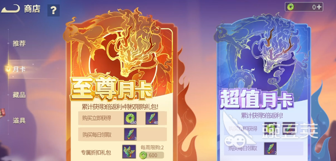 接下来就是68元的高级通行证,在购买之后就可以解锁额外的统帅栏位,让阵容的搭配更加灵活,还可以获得专属的棋盘,强力的异灵,还有大量的资源道具。比较关键的是600元正好在200元的返利档位中可以享受200%的返利,就等同于花一份钱可以拿到两份福利,不管是收集道具还是提升实力,这个档位都是比较划算的。如果想迅速的收集卡册或者是囤积资源,建议选择166元的组合套装。包括68元的高级通行证,还有68元的至尊月卡,以及30元的超值月卡。月卡就是获取资源的核心渠道,在购买之后就能拿到玉璧,而且每天还会赠送刀币。两套月卡总共可以获得130/80刀币。