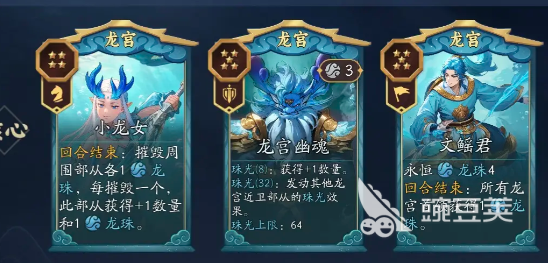 在龙宫就会有许多核心的流派,其实每一种流派都会有明确的玩法逻辑。那第1种就是暴兵流,又被称之为秒杀的机器,核心就在于要把珠泪天女,还有朱雀以及龙王等角色放在一起,可以形成羁绊。这几个简直就是远程部队的战斗力放大器,每一个回合结束之后,还可以叠加数量加成,可以说简直就是越打越猛,后期就能有效实现秒杀的快感。前排原本还计划用龙宫幽魂,可以靠着他回合结束之后的效果,能有效补充增益。后来又发现纯远程流,可以完全放弃前排,可以多拿三位女将,战斗力刷起来之后,根本就不需要担心贴脸,确实是比较省心高效的。在过渡阶段就可以选择沙蝎,可以有效增加金身,带来更好的叠加作用。