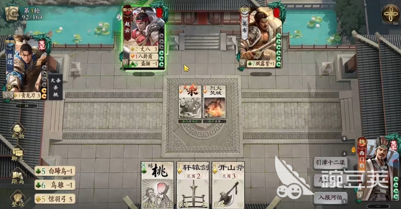 三技能【入报河伯】为限定技:可将当前场上所有角色手牌、装备区及弃牌堆中的黑桃牌全部洗回牌堆。该技能并非单纯清空,而是与【引漳十二渠】形成闭环配合——前期主动分发黑桃牌至对手手中,后期通过限定技回收,既削弱敌方黑桃资源稳定性,又保障己方后续黑桃供给,强化技能链可持续性。