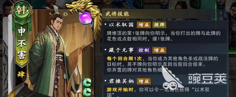 在《名将杀》这款策略卡牌对战游戏中,武将之间的技能协同是决定胜负的关键因素之一。当两位武将的机制形成互补闭环时,往往能打出远超单体强度的战术压制效果。其中,申不害与鲁肃的双人组合,凭借高信息差掌控力与动态手牌调控能力,在竞技场环境中展现出极强的稳定性与胜率优势。不少玩家关注该组合的具体配合逻辑与实战要点,本文将围绕两人技能本质、联动逻辑及阵容适配场景展开系统解析。