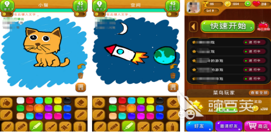 本作不限制参与人数,支持自由组队,可邀请多位好友共同加入。玩家根据自身特长选择角色:擅长构图与表现者担任画手,负责将系统随机生成的词语(如“小猫”“大型空间”等)用不同颜色画笔在空白画布上具象化;其余玩家则需结合画面细节与生活经验,在倒计时结束前准确猜出答案。操作直观,门槛低,适合全年龄段用户即开即玩。