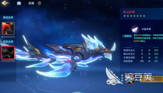 而另外一个就是次元狂鲨,是红色品质的高级坐骑,也是许多高端玩家的追求。这款坐骑没有办法直接解锁,而是只能通过圆满游玩法去获取。虽然目前还没有开放解锁的通道,但从技能描述来看,输出能力真的是特别厉害的。基础词条主要是聚焦双攻,还有百分比技能增强,在满级之后,魔法攻击力还有物理攻击力都可以突破300点。技能增强更是达到了5%纯输出向的属性配置,也会让它成为一把利器。