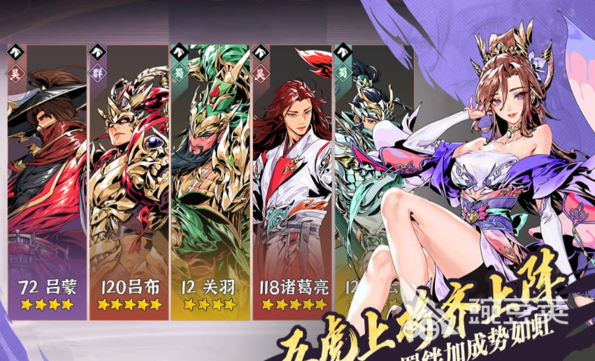 如果说你在战斗时更加喜欢速战速决的话,那么小编比较推荐你选择爆发控制流,具体的角色为典韦,马超,张辽,诸葛亮和刘备。其中典韦担任的是坦克的角色,小伙伴们一定要把它放在队伍的最前方,而马超和张辽则是这个队伍中的主c,并且不会太过脆皮,因此在生存方面不需要太过担忧,诸葛亮则是一个法术职业,比较脆皮,最好是放在队伍的最后排,刘备在这里担任的是增益的角色。这个配置最大的优点就是伤害出的极快,爆发非常之高。