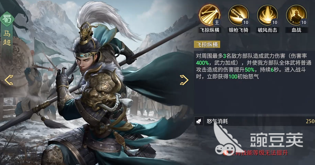 马超是蜀国阵营里的角色,自身的战斗能力非常强,可以利用四项攻击能力给对方带来伤害,每次挑战的时候,能给同时三名成员带来伤害,这种群攻角色非常适合玩家各个阶段,可以选择把它和其他的几个蜀国阵营角色组成五虎队,首先就是把马超和关羽,张飞搭配在一起,这几个角色都有重击伤害能力,组合起来之后可以保证队伍的输出,马超能在游戏里产生多段伤害,关羽可以作为主将,搭配上张飞能保证整个队伍的均衡,不管是哪种类型的战役,都能利用角色的战力快速输出。